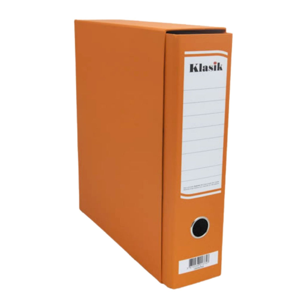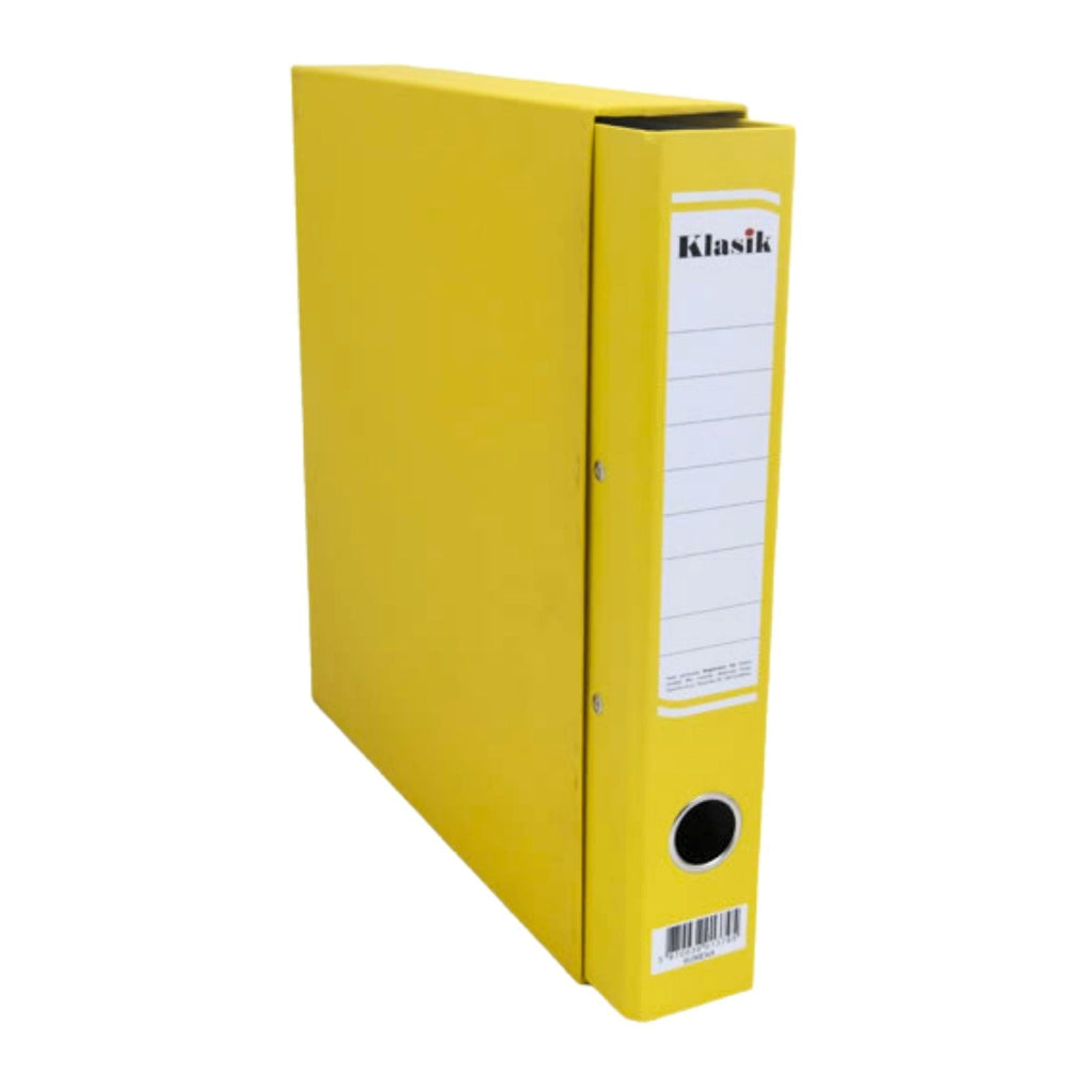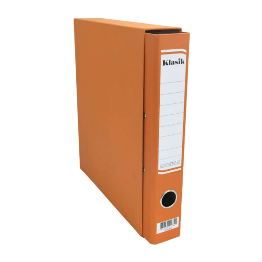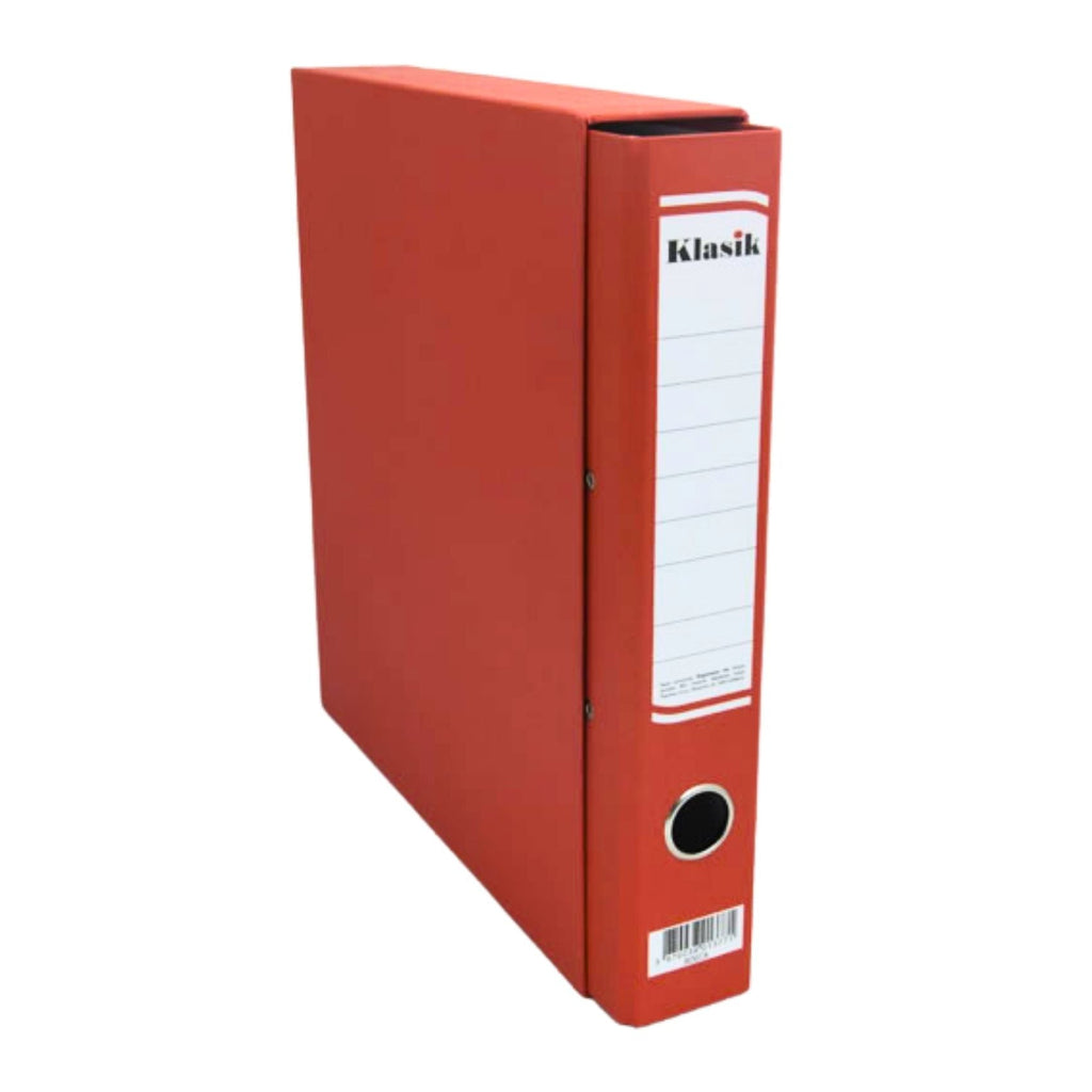 Registrator z dvižnim mehanizmom za shranjevanje luknjanih dokumentov. Trda, lepljena škatla. S PP-žepom za etiketo. Na voljo v dveh širinah hrbta: 50 mm ali 80mm.