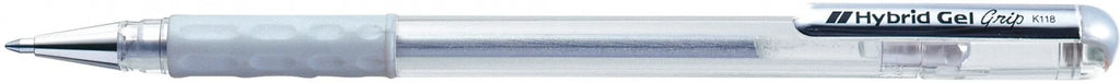 Pentel hybrid gel grip s srednjo konico debeline 0,8 mm. Črnilo v kovinski barvi je vidno ne le na belem, ampak tudi na temnem papirju. Vodoodporna mina in odporna proti bledenju. Primerno za okrasno pisanje. Na voljo v različnih barvah.