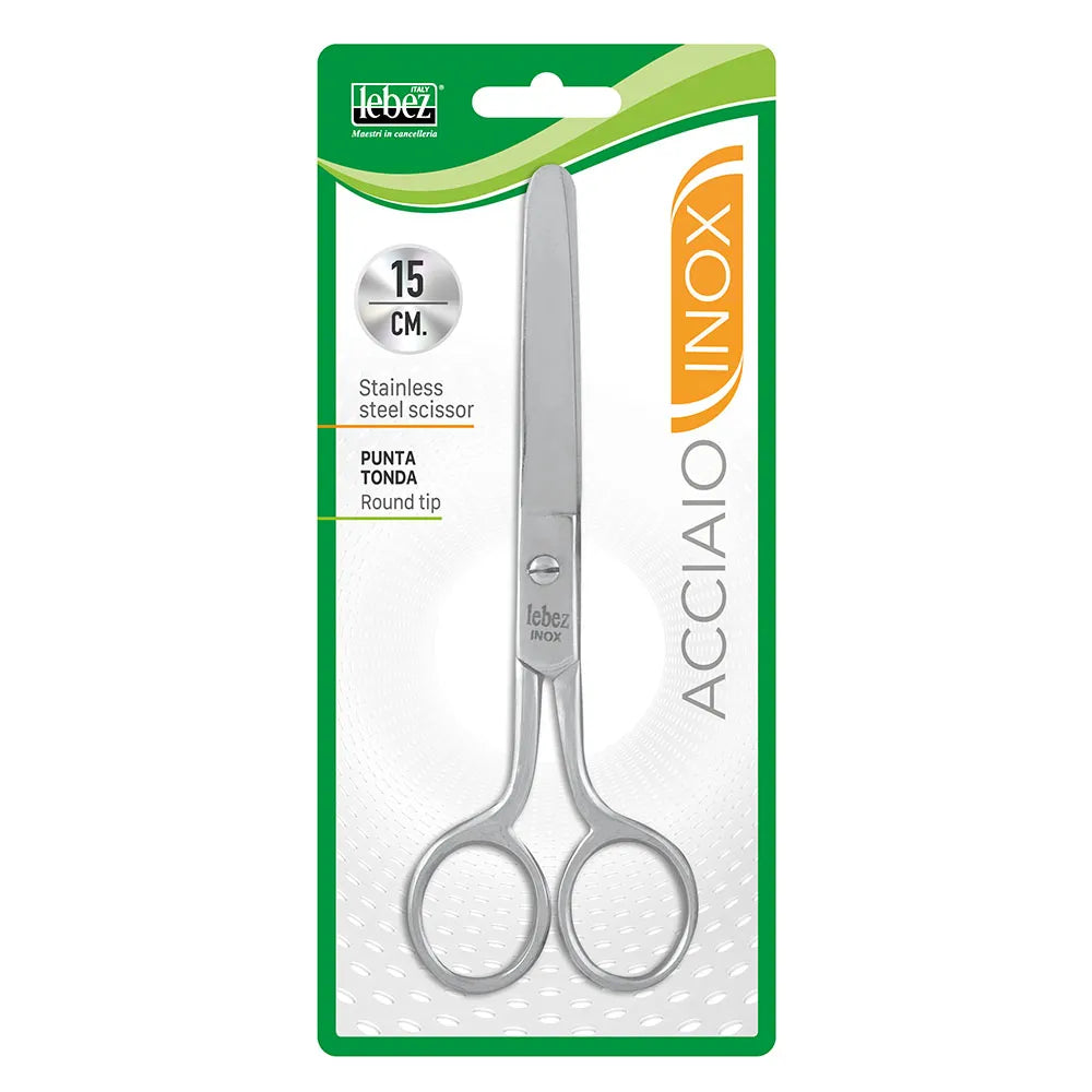 Škarje Lebez z rezili iz nerjavečega jekla dolžine 15 cm, z zaobleno konico.