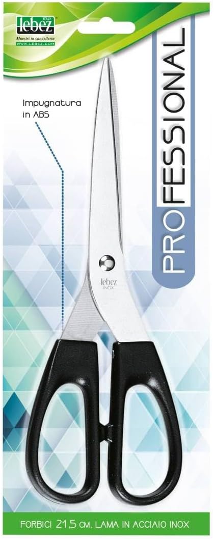 Škarje Lebez z rezili iz nerjavečega jekla dolžine 17 cm, 21,5 ali 25 cm ter ročajem iz ABS plastike.