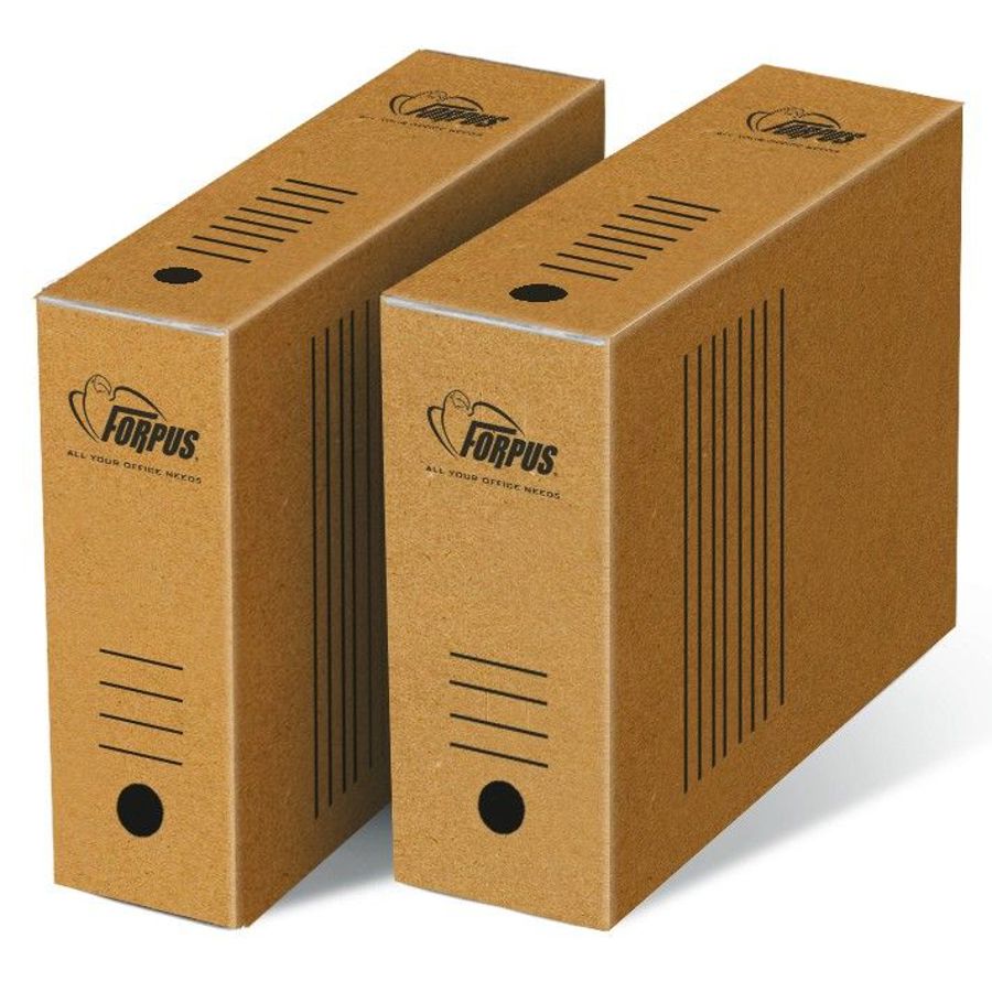 Arhivska škatla Forpus. Idealna rešitev za dolgoročno arhiviranje dokumentov. Škatla je izdelana iz stabilnega valovitega kartona. Odprtine za prste. Mrežasti prostori za označevanje in etiketiranje. Zapiranje na dolgi strani. Zaklepanje. Dimenzije: 250 x 325 x 80 mm.