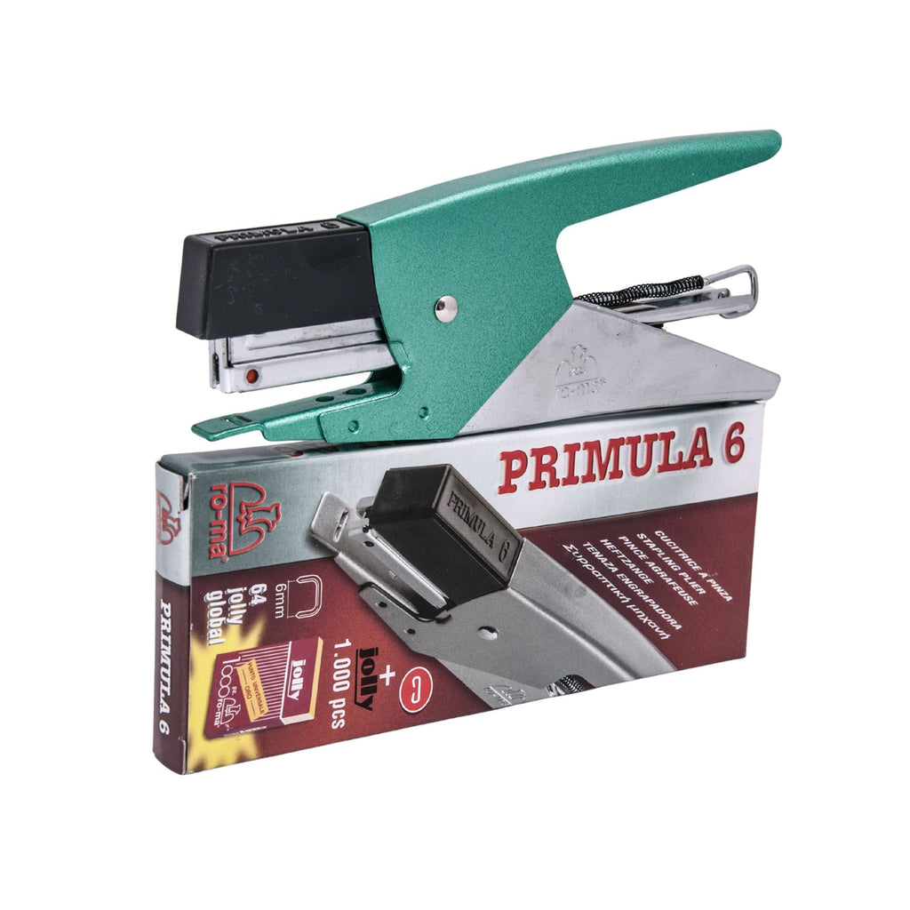 Spenjač klešče Primula 6 s škatlo sponk Jolly. Spenja do največ 12 listov.