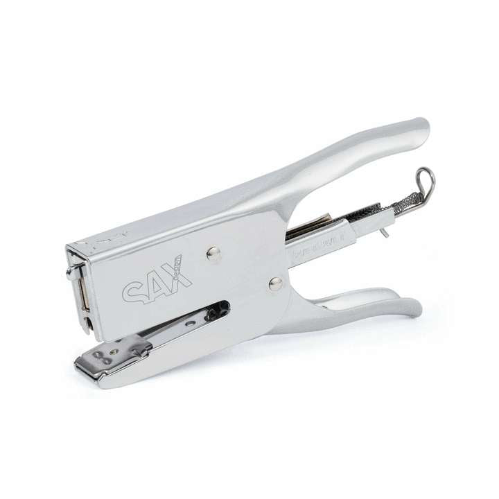 Kvalitetne kovinske spenjalne klešče Sax 630 za spenjanje do 40 listov (80g/m2) hkrati. Klešče imajo kromirano ohišje in nastavljivo glavo. Za sponke št. 4/6, 24/8, 26/6 in 26/8.