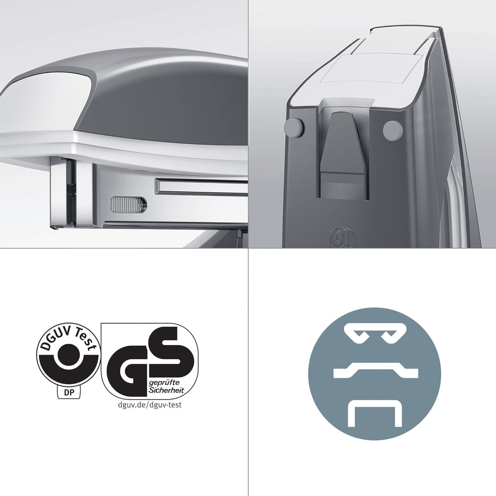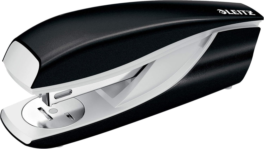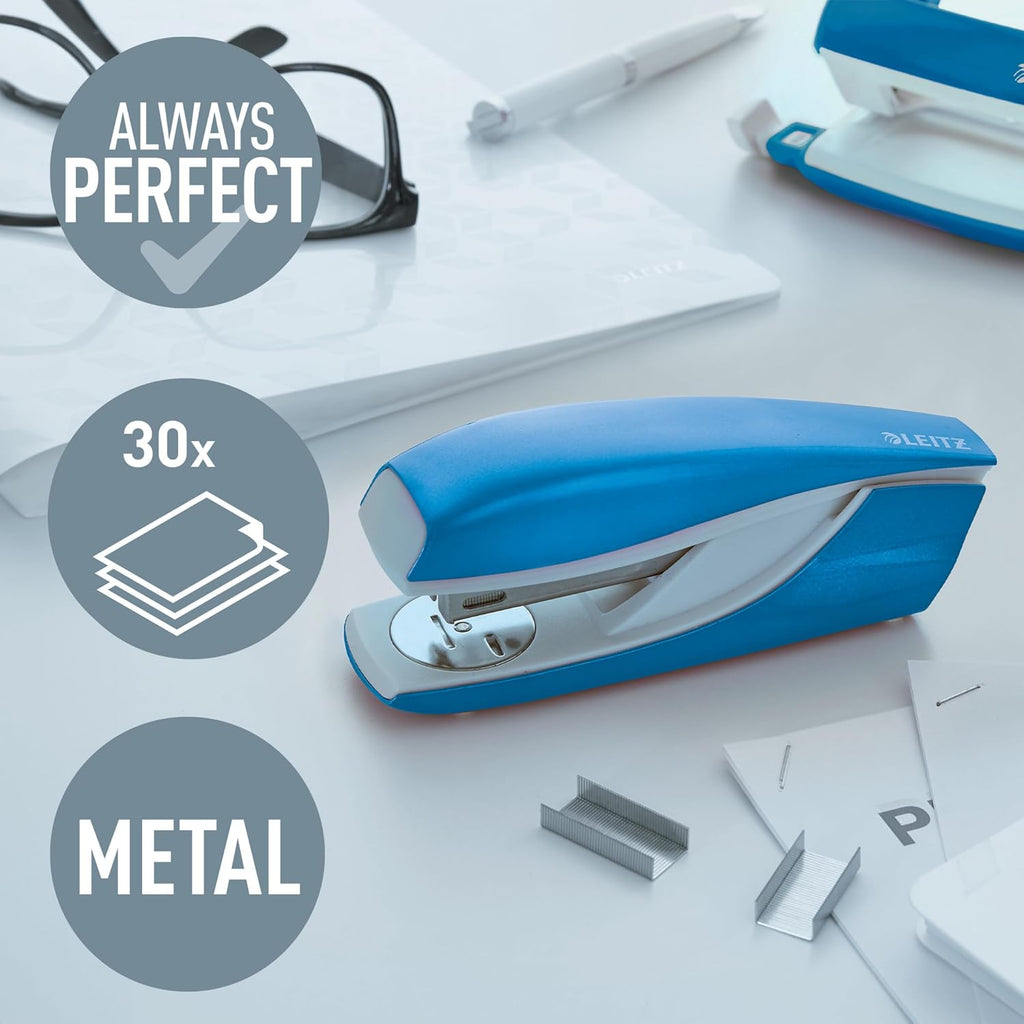 Spenjač Leitz za do 30 listov (80g/2) ima kovinsko ohišje in je namenjen za vsakdanjo uporabo. Zaradi kompaktne velikosti se prilega vsaki mizi in večini predalov, noge proti zdrsu ne puščajo sledi na pohištvu, ima integriran odstranjevalec sponk. Na voljo v različnih barvah.