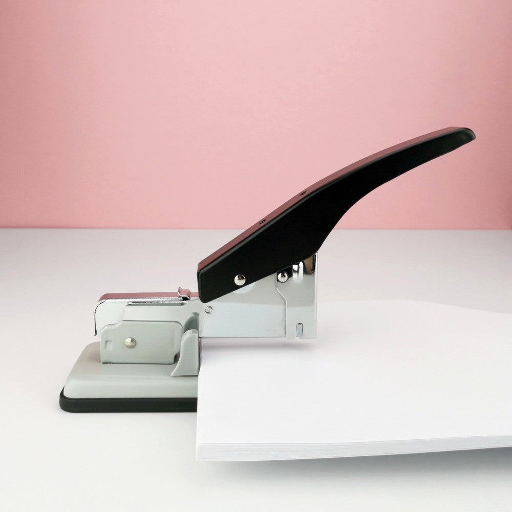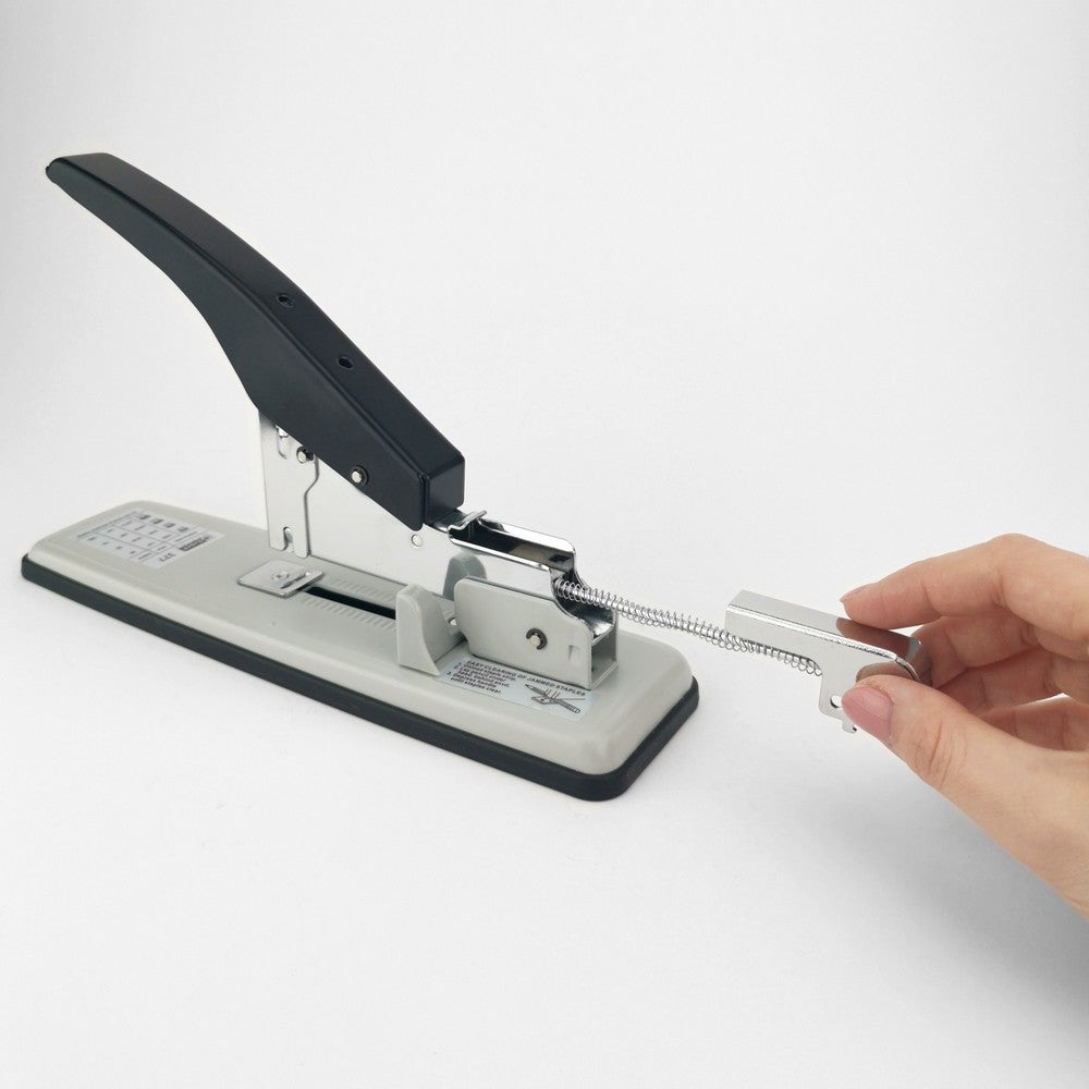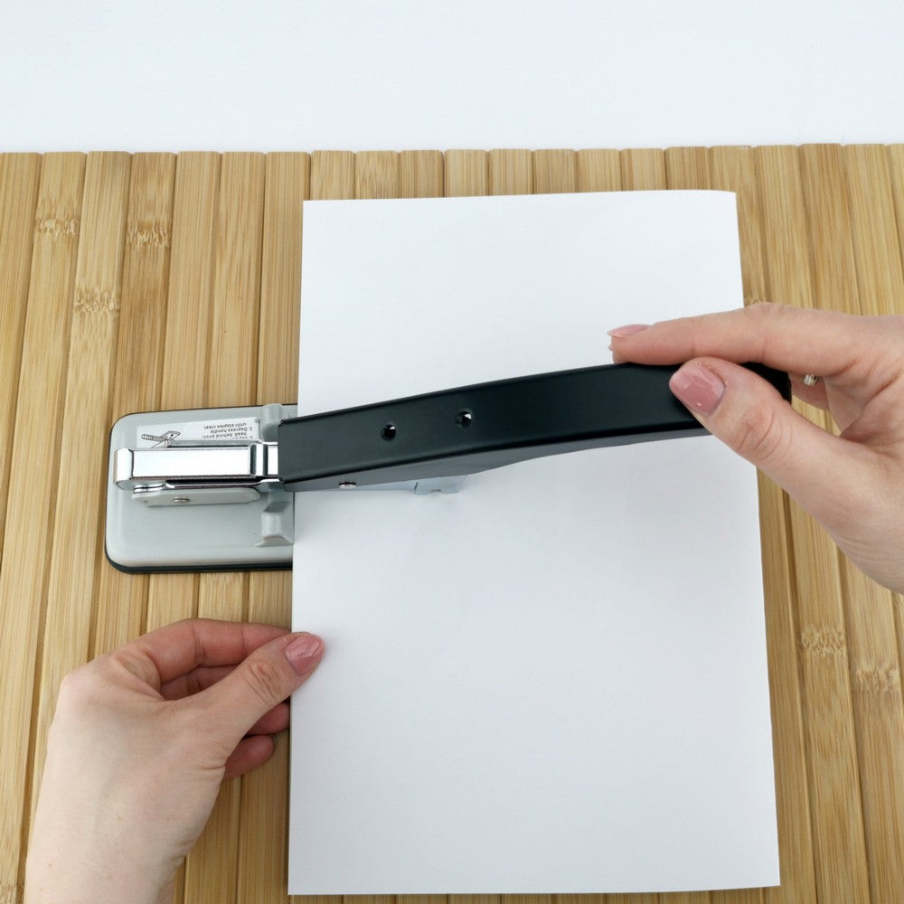 Robusten, vzdržljiv kovinski pisarniški spenjalnik Levia, zasnovan za spenjanje večjih datotek. Spenje do 100 listov naenkrat. Koristen pri vsakodnevnem delu, nepogrešljiv za organizacijo in arhiviranje dokumentov. Mehanizem in roka sta kovinska, ima nedrsečo plastično podlago, z zgornjim vstavljanjem. Največja globina vstavljanja: 67 mm. Velikosti sponk: 12/6/8/10/13, 23/6/8/10/13, 24/6/8/10/13, 26/6/8/10/13.