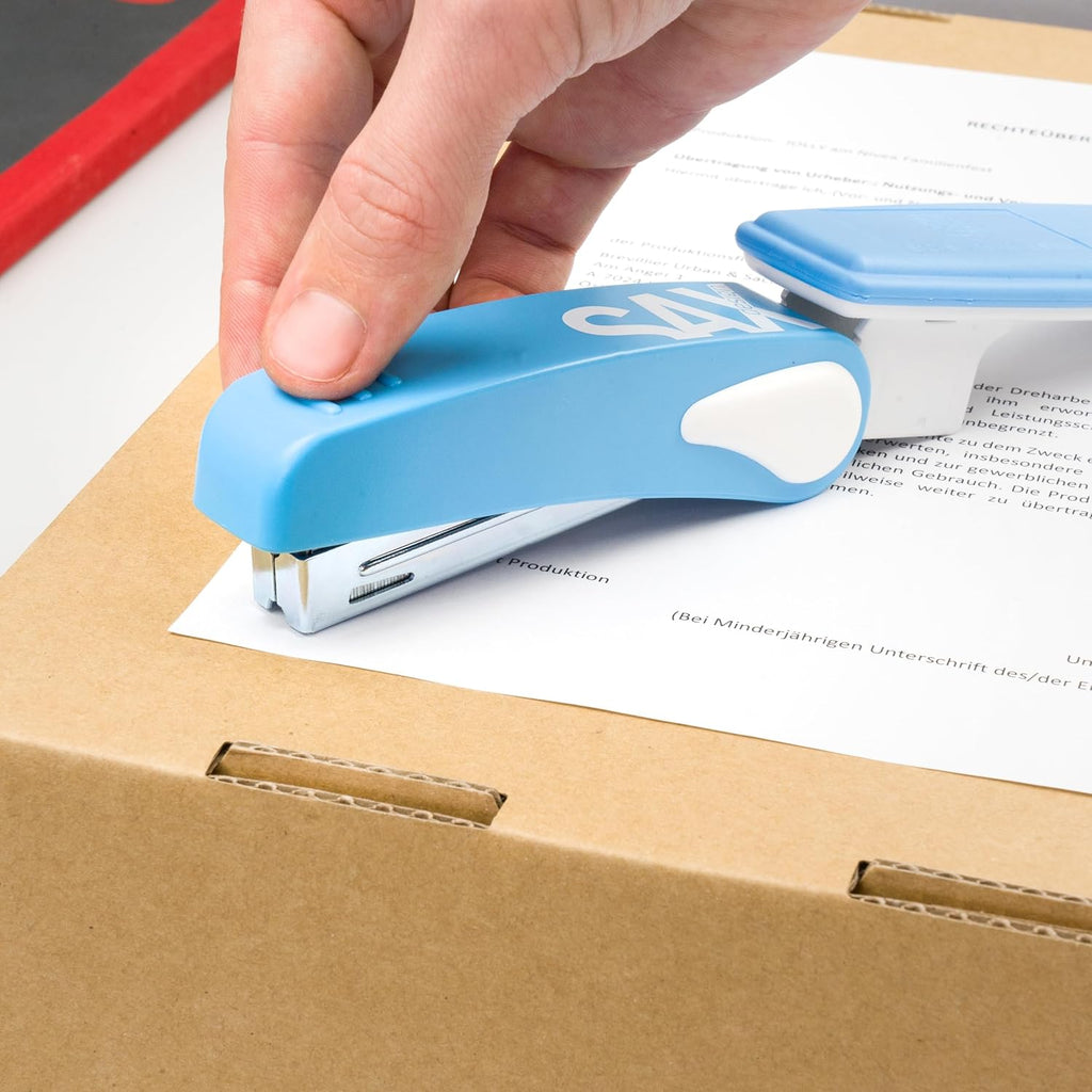 Kompaktni spenjač Sax Design s kovinskim jedrom in privlačnim ohišjem za spenjanje največ 25 listov hkrati. Največja globina spenjanja: 63 mm. Vrsta spenjanja: 100 sponk 24/6 ali 130 sponk 26/6. Vrsta spenjanja: ravno spenjanje, žebljičenje. 10-letna garancija SAX. Na voljo v različnih barvah.