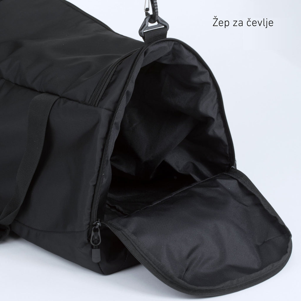 Lahka in prostorna torba v dinamičnem in barvitem dizajnu, idealna za vadbo ali vsakodnevne športne izlete, zapiranje na zadrgo, predal za čevlje, dva stranska žepa. 500 × 280 × 300 mm, 40 l.