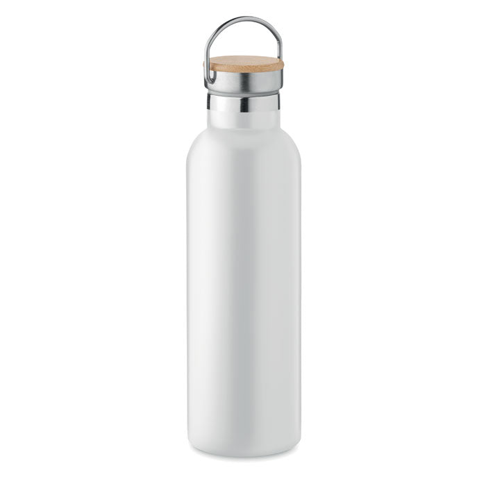 Izolirna vakuumska steklenica, iz nerjavečega jekla, z dvojno steno in pokrovom z dodatkom iz bambusa, 750 ml. Dimenzije: ø 70 × 260 mm.