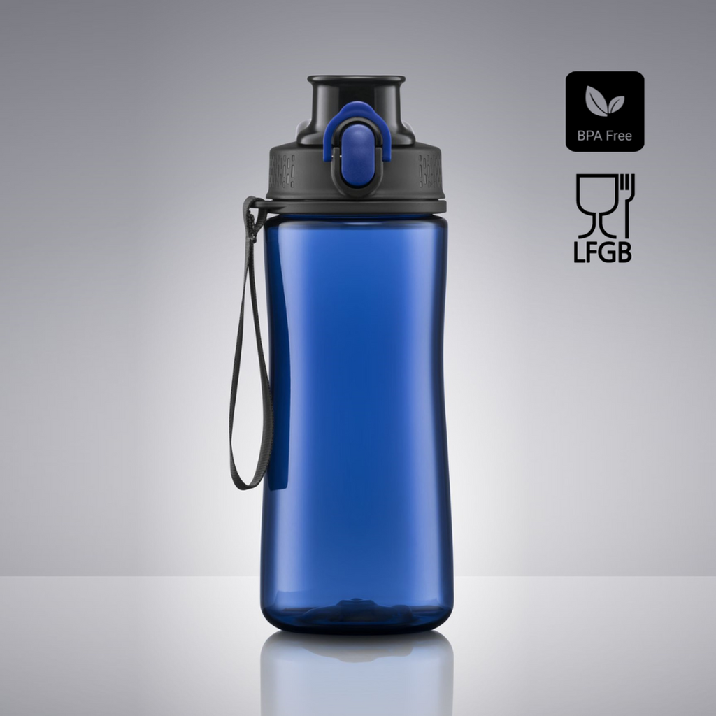 Iz trpežnega materiala TRITAN™, neprepustni pokrovček je iz kombinacije plastike in ABS. Enostavno odpiranje in zapiranje, 550 ml. V darilni embalaži.